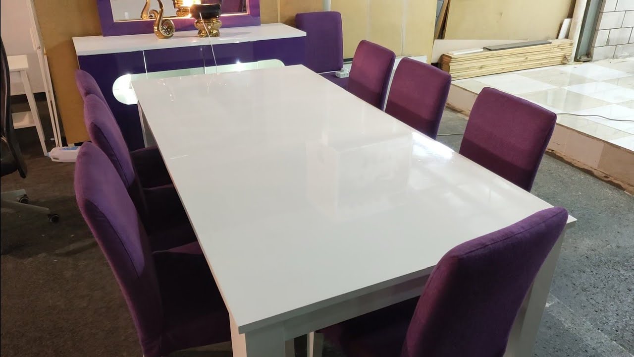 سعر طاولة خشبية معها لوح زجاج وستة كراسي: 949 ريال سعودي.