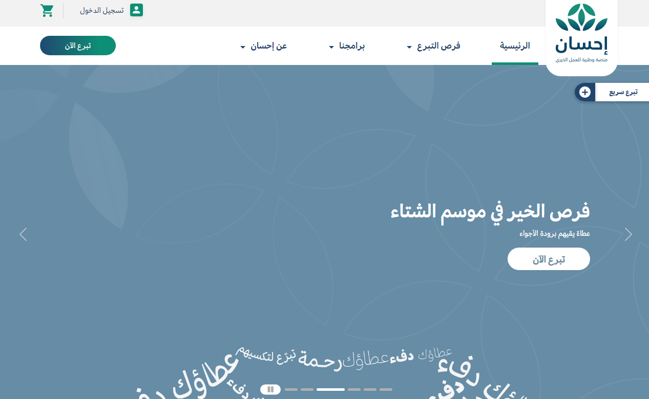 - قم بالدخول بشكل مباشر إلى منصة إحسان الإلكترونية "من هنا".