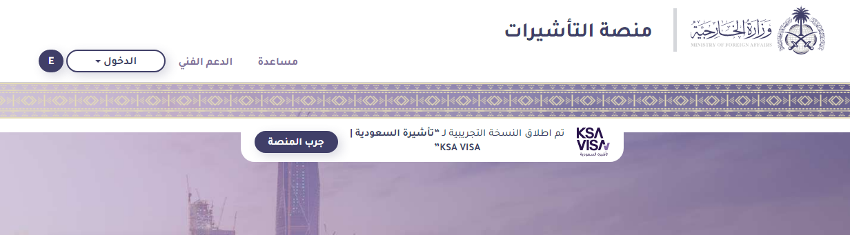 - قم بالدخول بشكل مباشر إلى منصة التأشيرات الإلكترونية "من هنا".