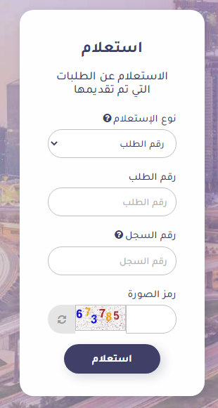 - اختر خدمة الاستعلام برقم الطلب.