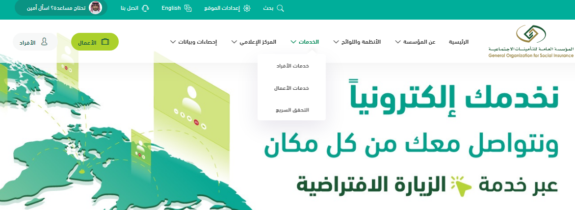 - قم بالتوجه إلى بوابة المؤسسة العامة للتأمينات الاجتماعية.