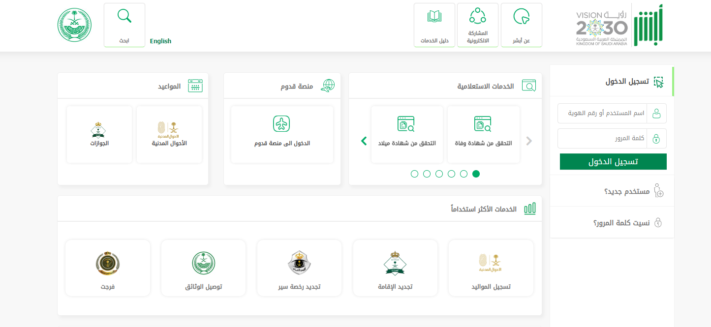 - الدخول إلى منصة أبشر التابعة لوزارة الداخلية السعودية.