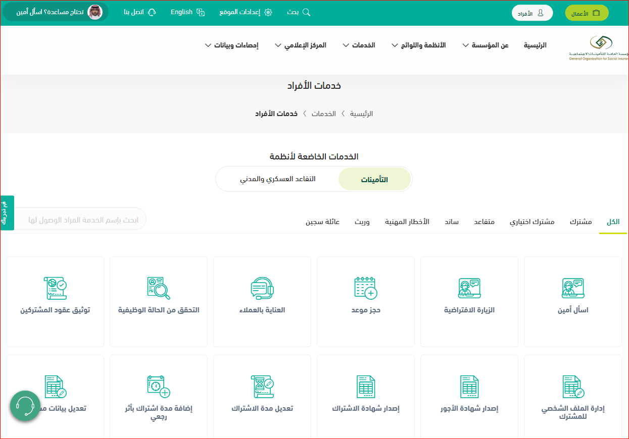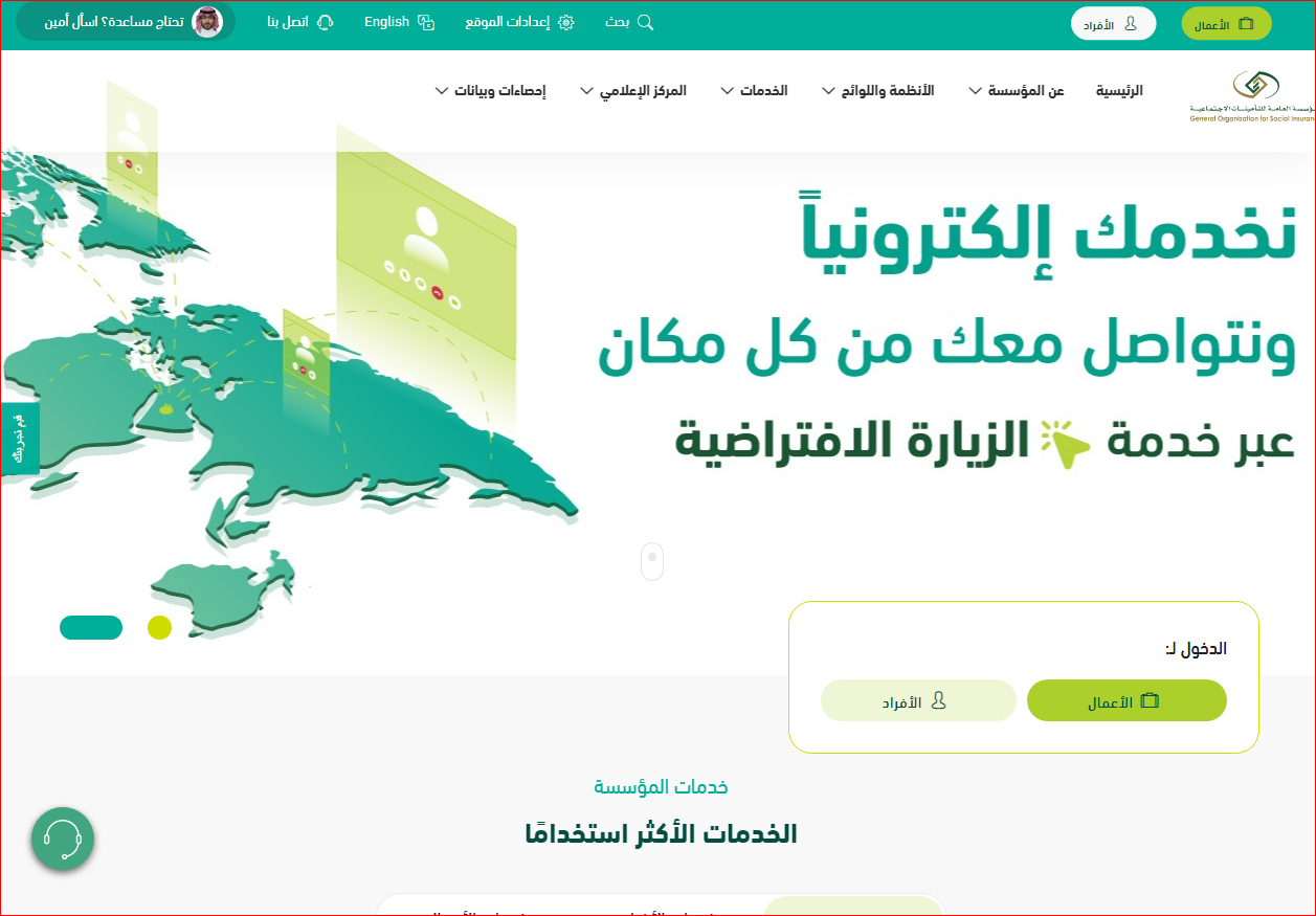 - قم بالذهاب إلى الموقع الرسمي للمؤسسة العامة للتأمينات الاجتماعية.