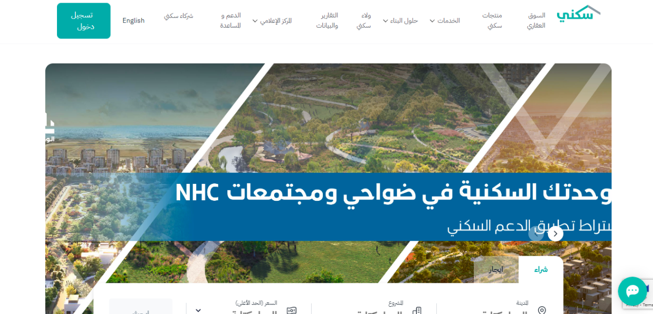 - التوجه لمنصة سكني.