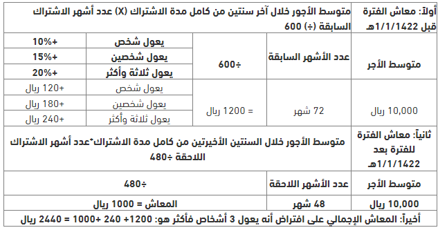 يتم العمل على احتساب التقاعد المبكر عن طريق معادلة تتضح في المثال أدناه: