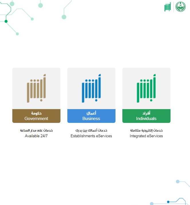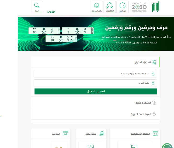 - الذهاب إلى الموقع الإلكتروني الخاص بمنصة أبشر.