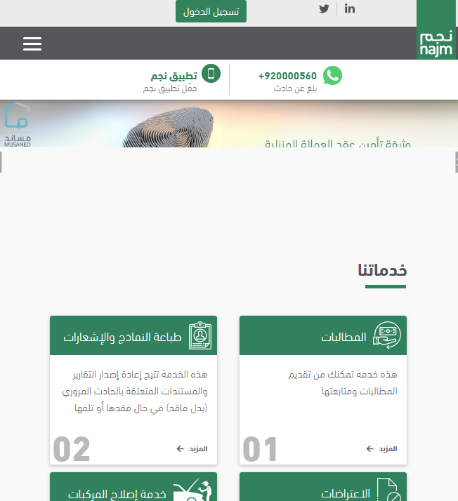 رابط الإبلاغ عن وقوع حادث في شركة نجم 1445