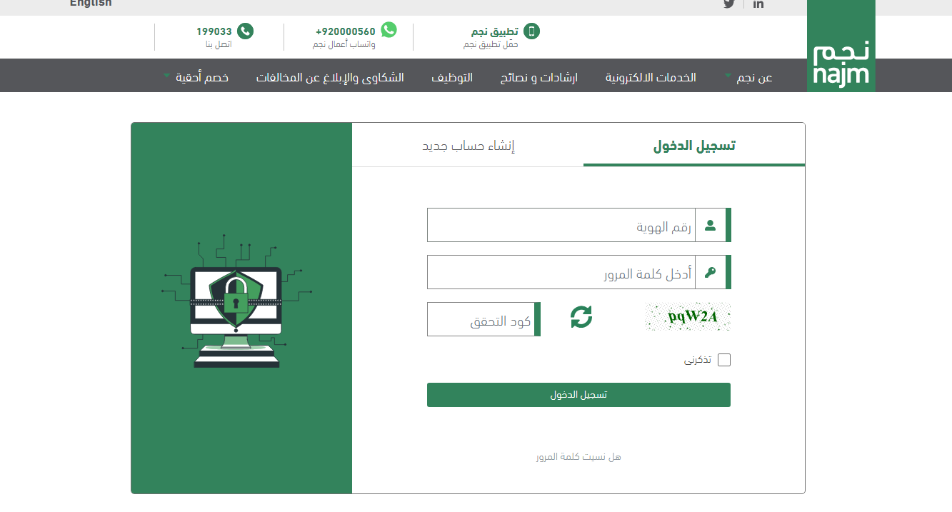 - يتم التواصل مع عملاء شركة نجم من خلال رقم 199033 أو واتساب من رقم 920000560.
