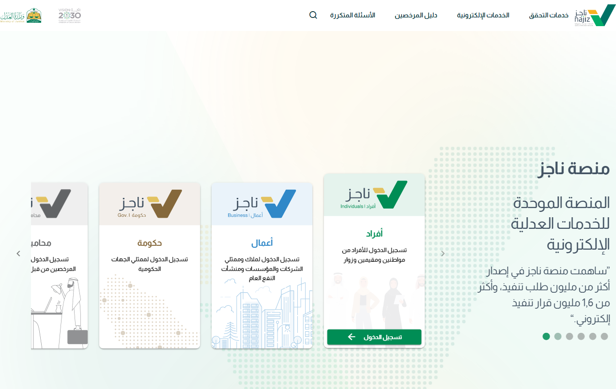 - قم بالدخول بشكل مباشر إلى منصة ناجز الإلكترونية "من هنا".