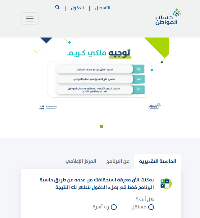 - الذهاب إلى الموقع الإلكتروني الخاص ببرنامج حساب المواطن.