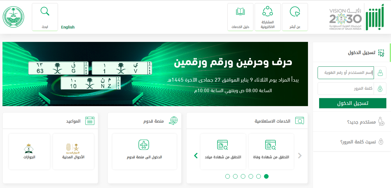 - قم بالدخول بشكل مباشر إلى منصة أبشر الإلكترونية "من هنا".