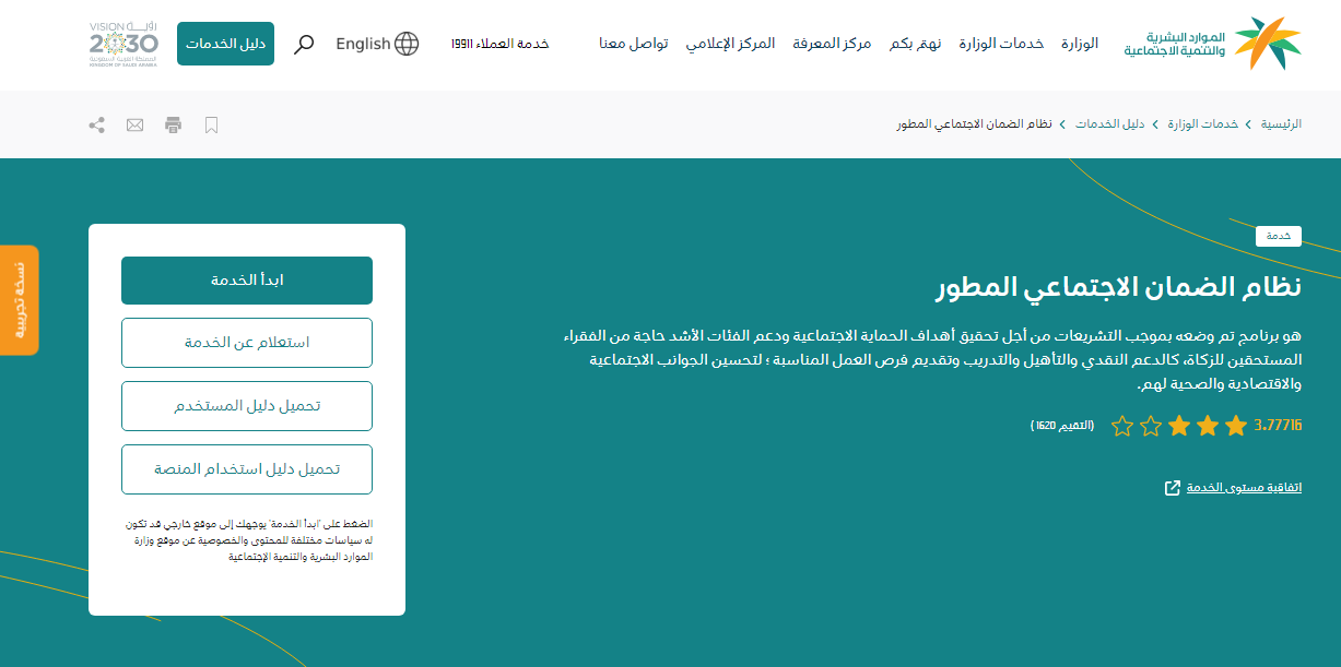- ثم قم بالضغط على الضمان الاجتماعي المطور.