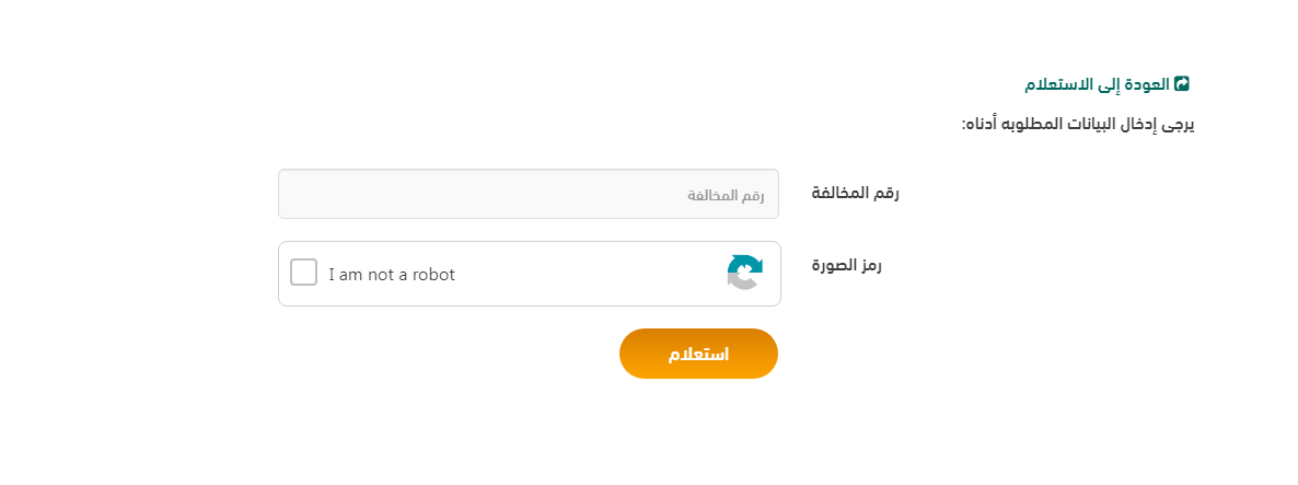 - قم بملء بيانات الاستعلام (رقم هوية المخالف بالسجل المدني، ورقم المخالفة).