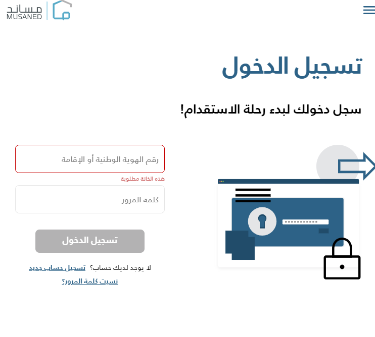- تسجيل الدخول بكتابة رقم الهوية الوطنية أو الإقامة بالإضافة إلى كلمة المرور والنقر على تسجيل الدخول.