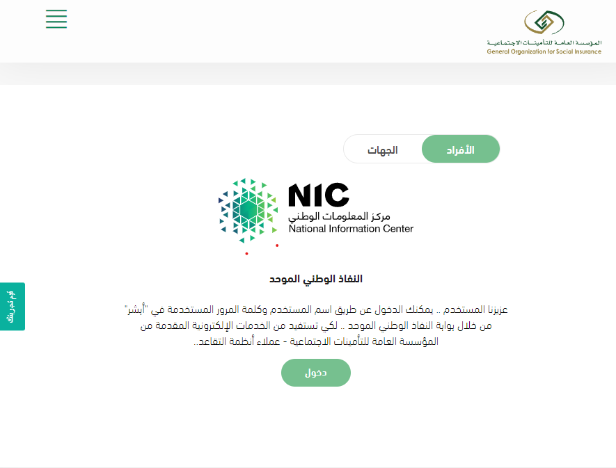 - الدخول علي موقع مؤسسة التأمينات الاجتماعية.