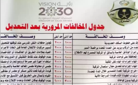 - غرامة مخالفة تنظيم السير على الطريق 300 ريال سعودي.