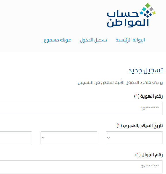 - يتم تسجيل رقم الجوال الخاص بالمواطن في الحقل الظاهر له.