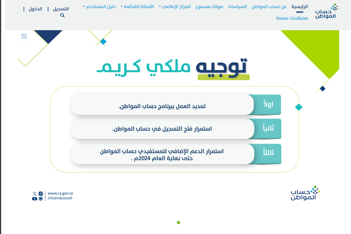 - الدخول إلى الموقع الرسمي لحساب المواطن.