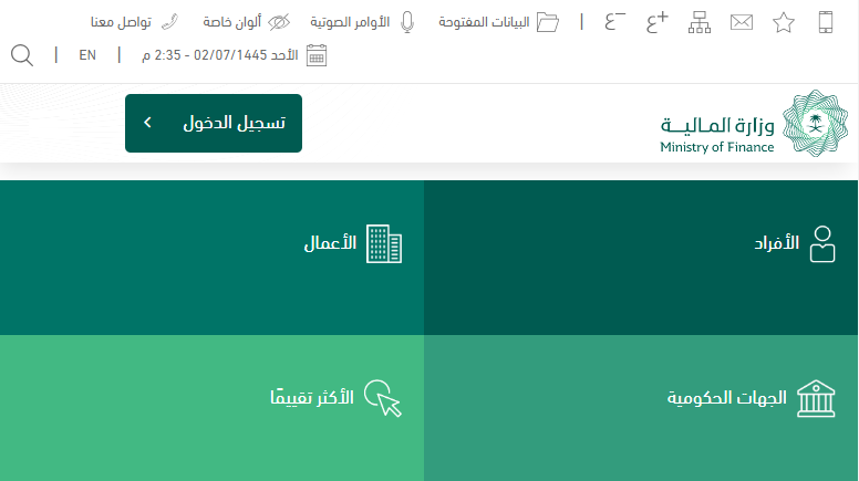 - الدخول على الموقع الإلكتروني الرسمي لوزارة المالية السعودية.