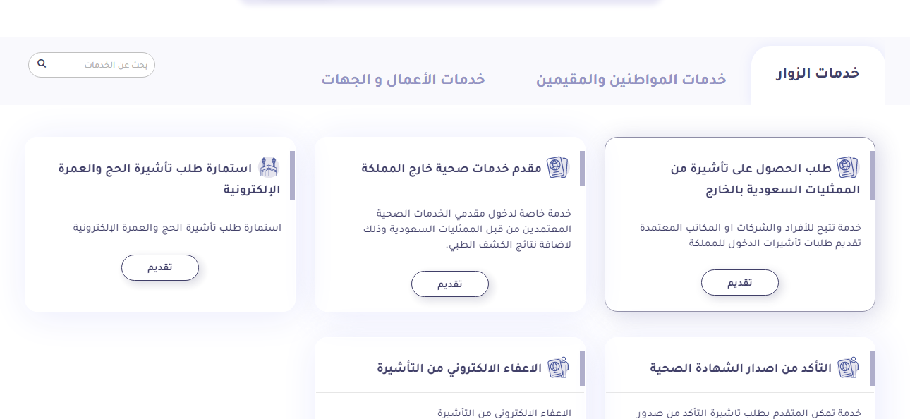 - من ثم النقر على "خدمات الزوار" من واجهة المنصة.