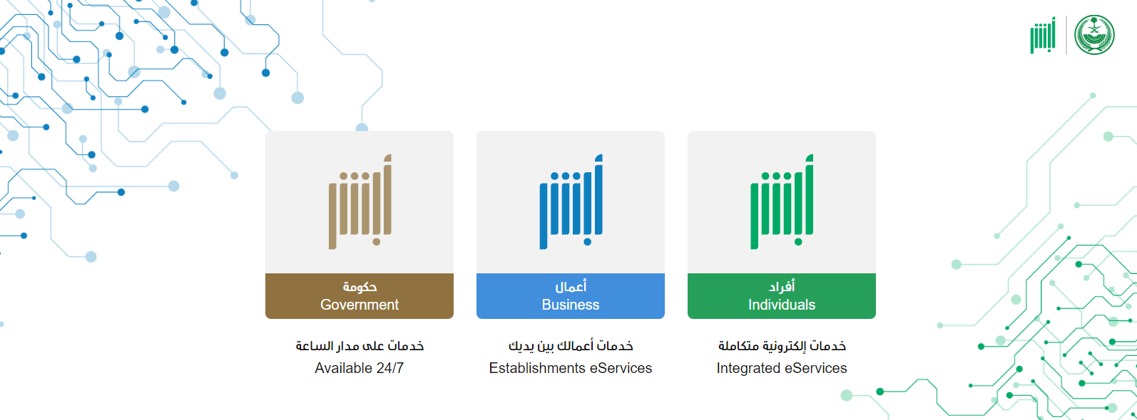 - قم بالتوجه إلى منصة أبشر الإلكترونية.