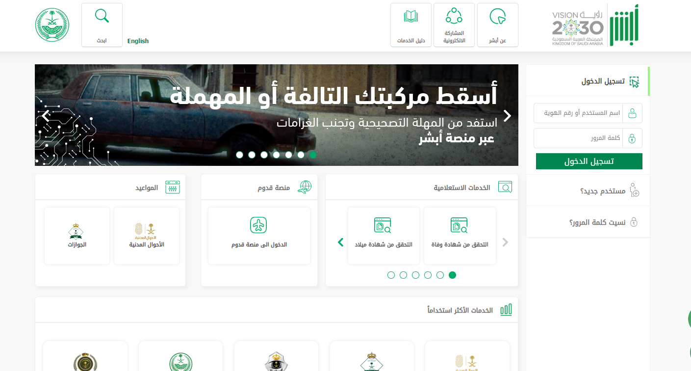 - التوجه إلى منصة أبشر الرقمية التابعة لوزارة الداخلية.