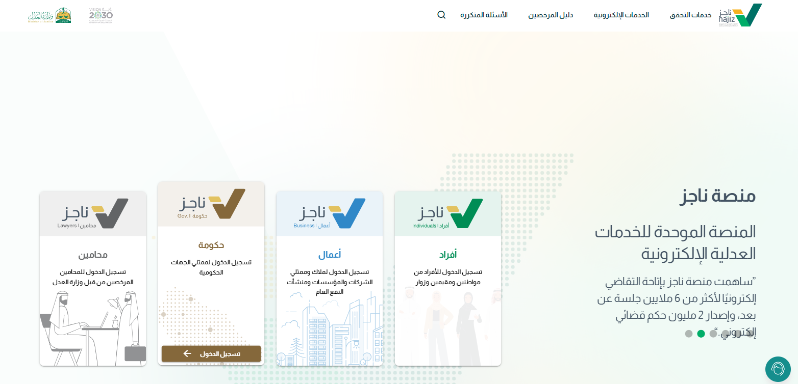 - الدخول إلى الموقع الرسمي الخاص بوزارة العدل السعودية.