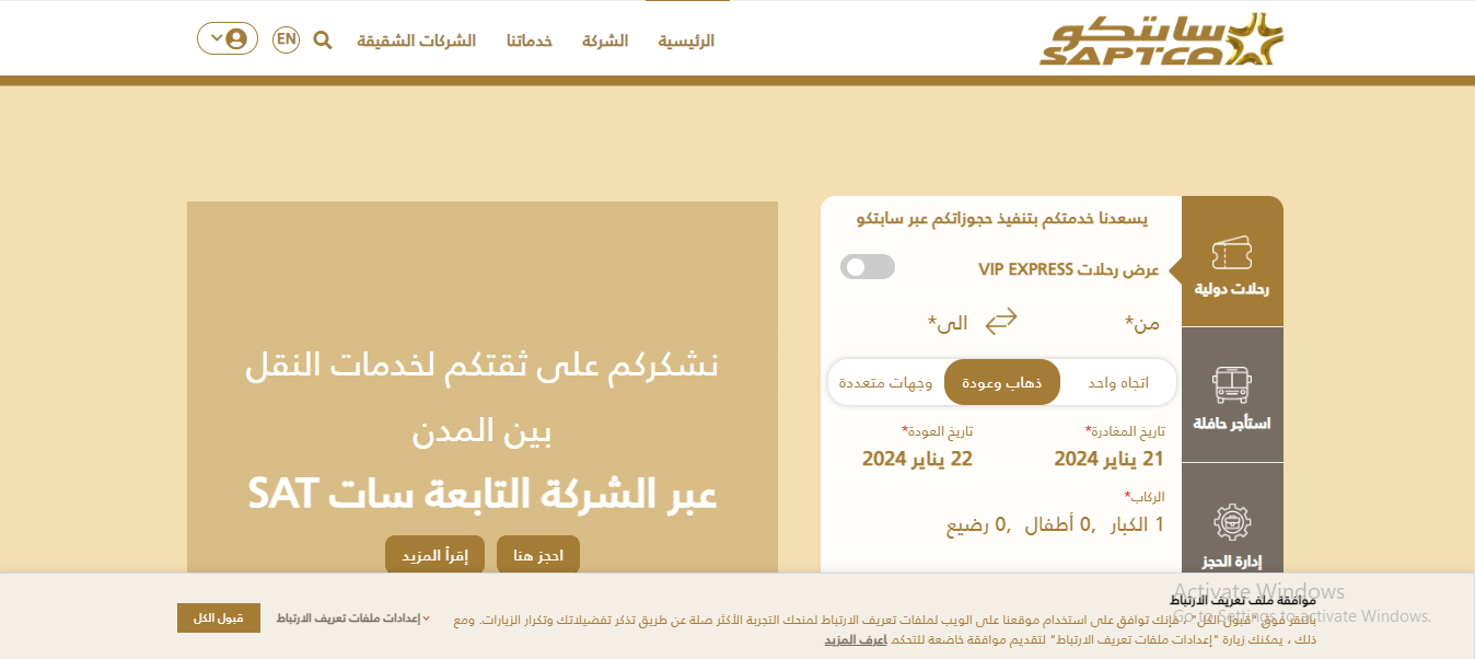 - الدخول إلى الموقع الرسمي لشركة سابتكو للنقل العام.