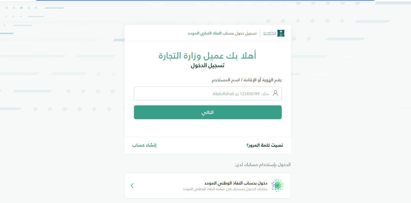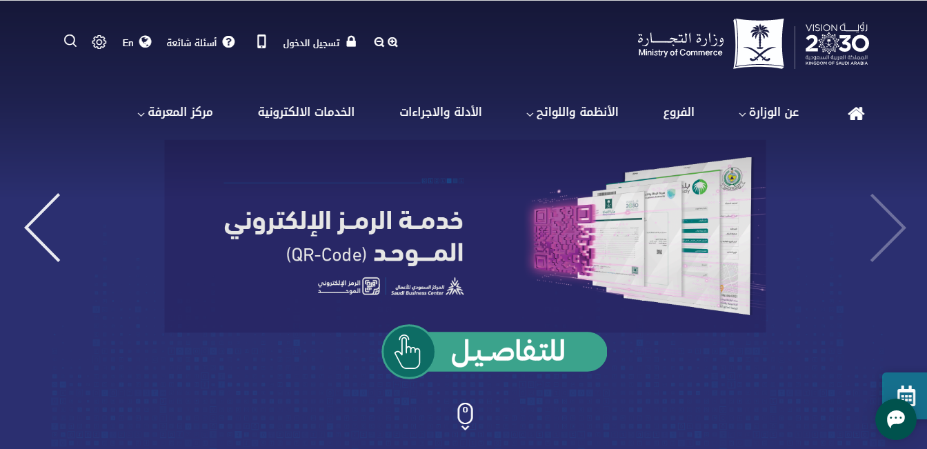 - الدخول الموقع الإلكتروني لوزارة التجارة السعودية.