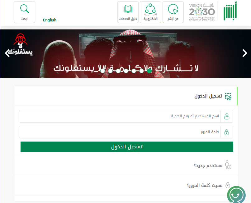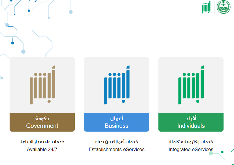 - التوجه إلى الموقع الإلكتروني الرسمي لمنصة أبشر.