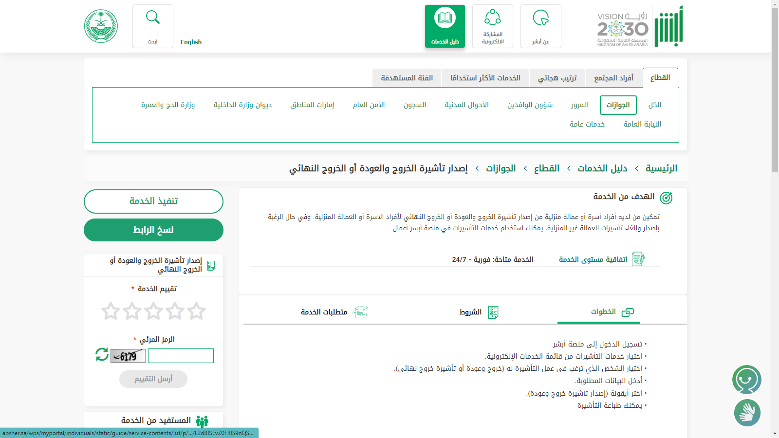 - حدد خدمة إصدار تأشيرة الخروج النهائي.
