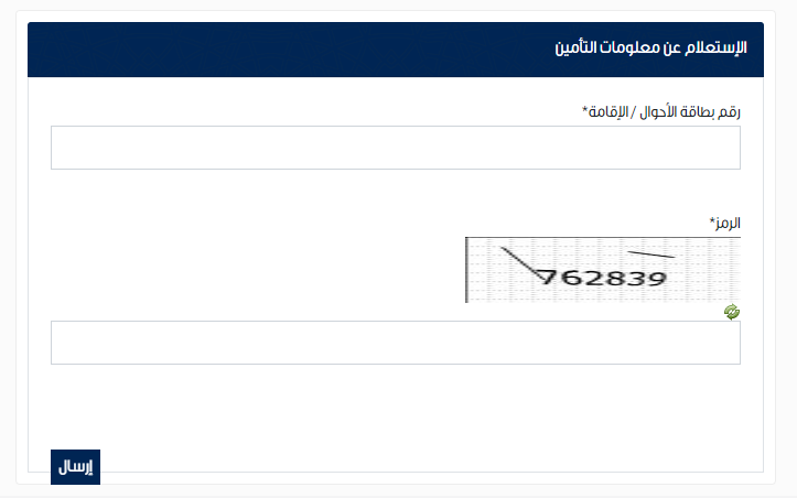 - من القائمة اختر "استعلام عن معلومات التأمين".