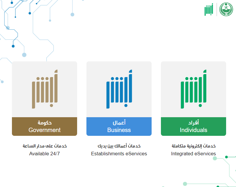 - التوجه إلى الموقع الإلكتروني الرسمي لأبشر.