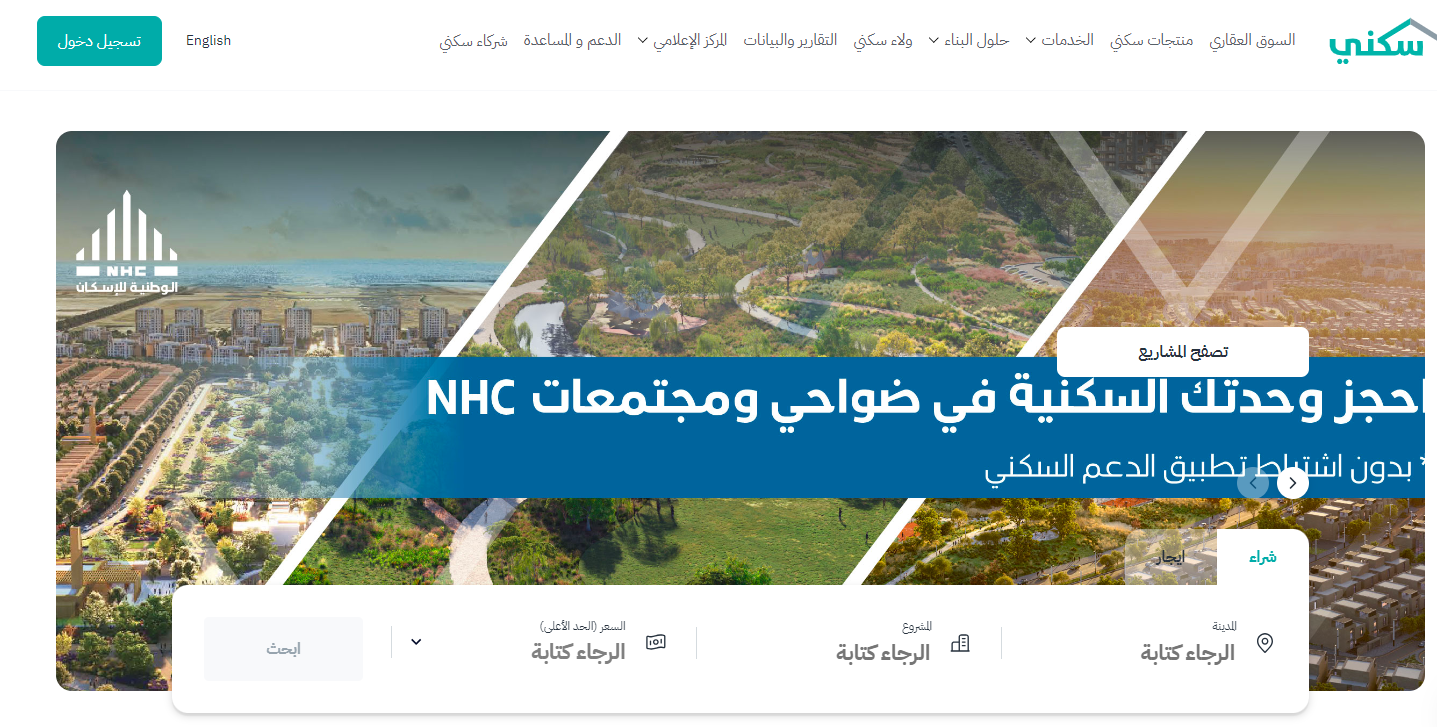 - الدخول إلى منصة سكني الإلكترونية.