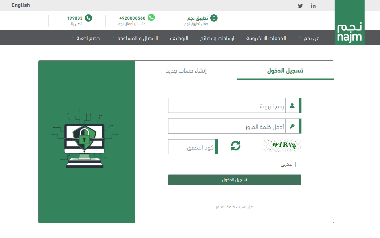 - قم بالدخول إلى موقع شركة نجم من هنا.
