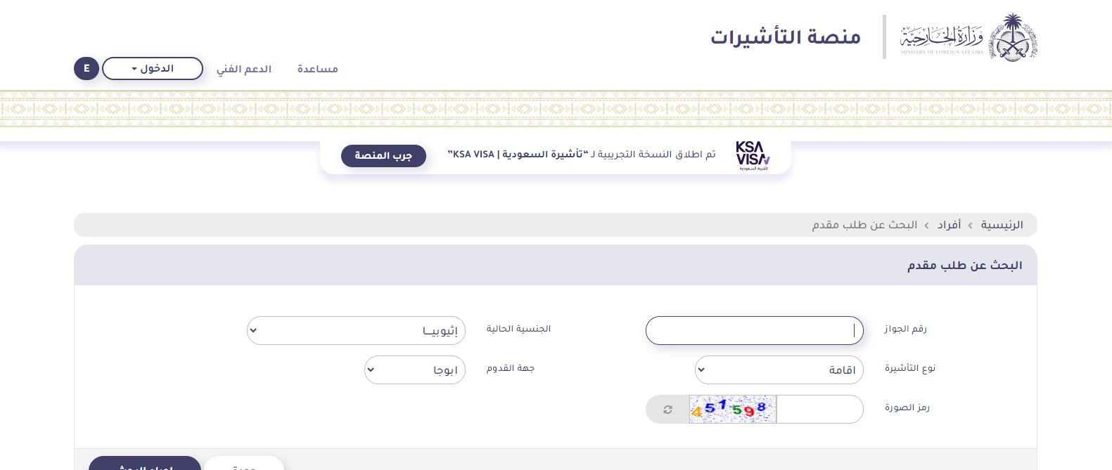 خدمة استعلام عن طلب زيارة شخصية برقم الجواز