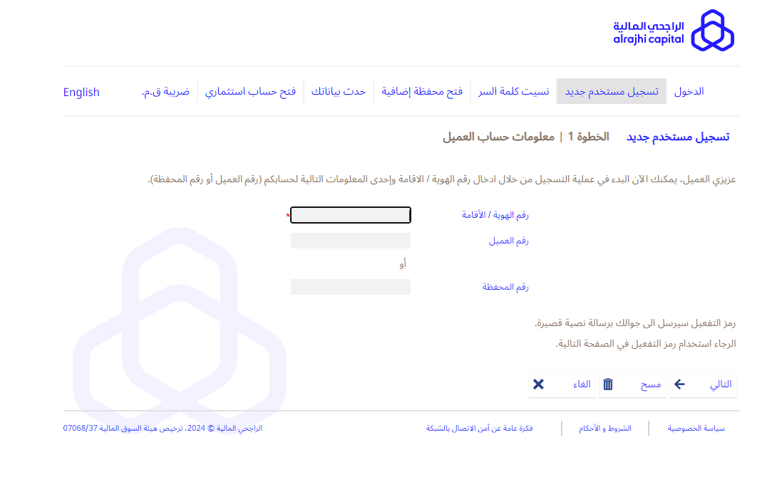 - قم بالدخول إلى الموقع الإلكتروني الخاص بالراجحي المالية منصة التسجيل من هنا.