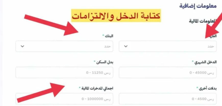- إن كنت مؤهل فقم بإدخال البيانات المطلوبة عن السكن والدخل الشهري والتابعين وغيره.