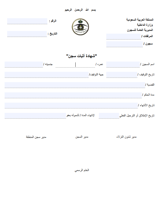 - يتم إنهاء الإجراءات بواسطة موظف مديرية السجون وتحديد موعد استلام الشهادة.