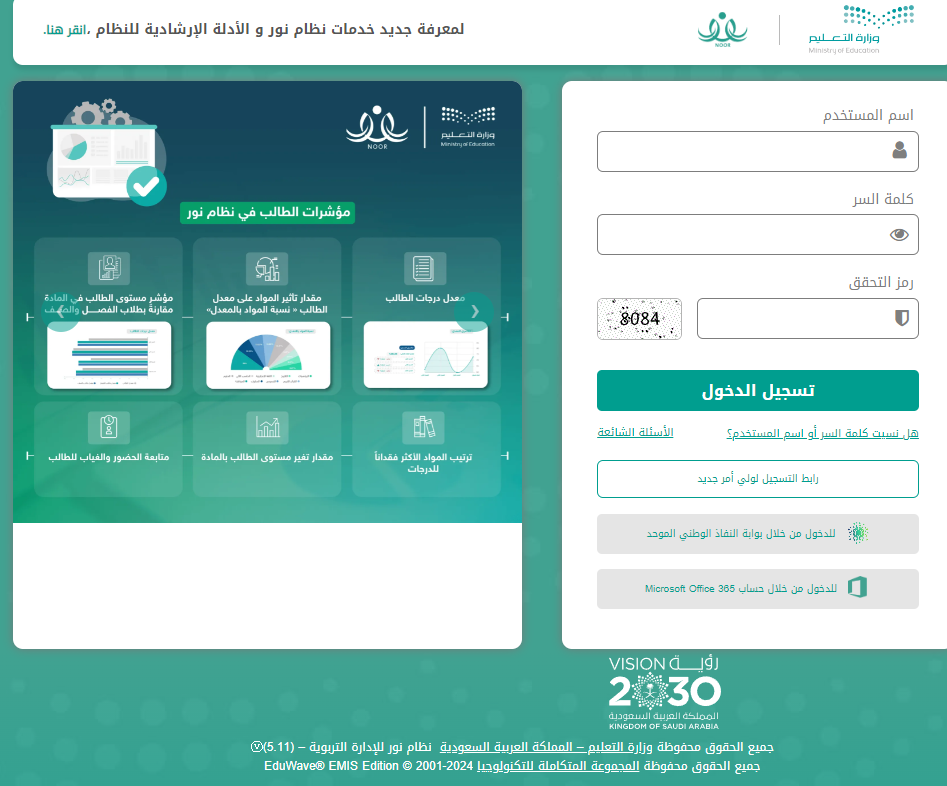 يوفر نظام نور العديد من الخدمات للطلاب وأولياء الأمور ومنها: