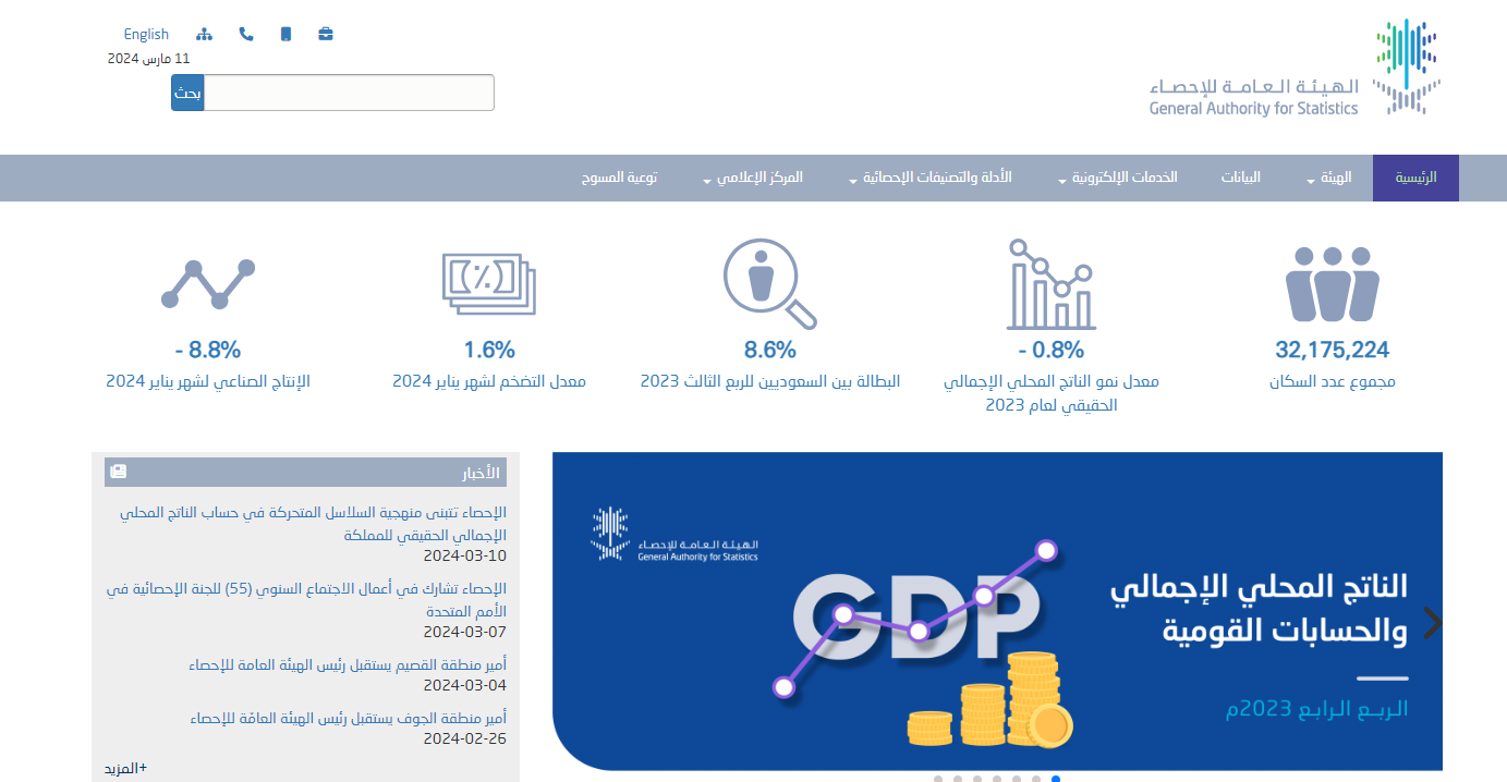 - الدخول إلى الموقع الإلكتروني لهيئة الإحصاء "من هنا".