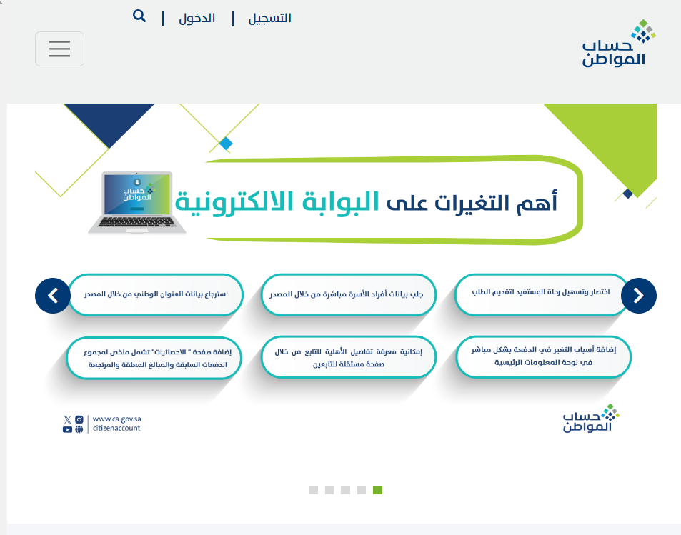 - قم بالدخول إلى موقع برنامج حسبا المواطن من هنا.