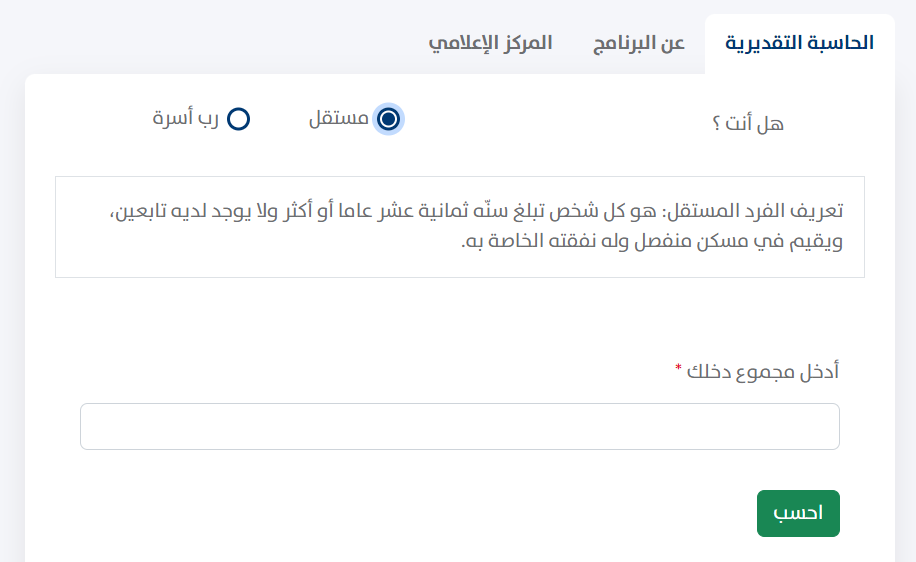 - ثم حدد نوع المستفيد هل هو رب أسرة أو فرد مستقل.
