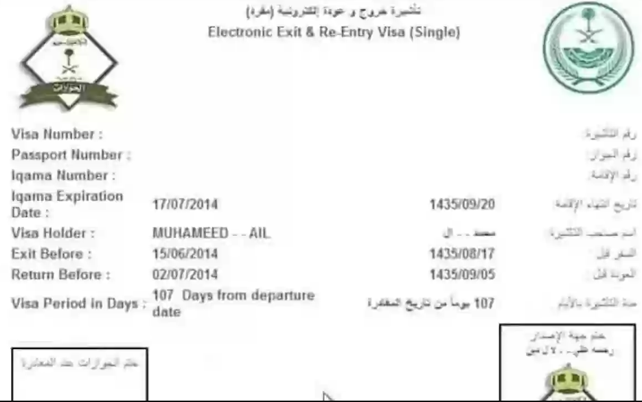 - الضغط إصدار تأشيرة الخروج والعودة.