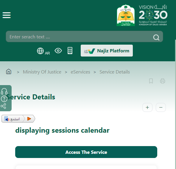 - يتم تحديد خدمة الاستعلام عن موعد قضية.
