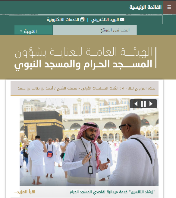 - الولوج إلى الموقع الإلكتروني الرسمي لرئاسة شؤون خدمة الحرمين.
