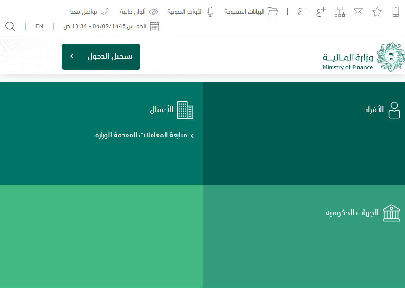 - التسجيل على موقع وزارة المالية السعودية.