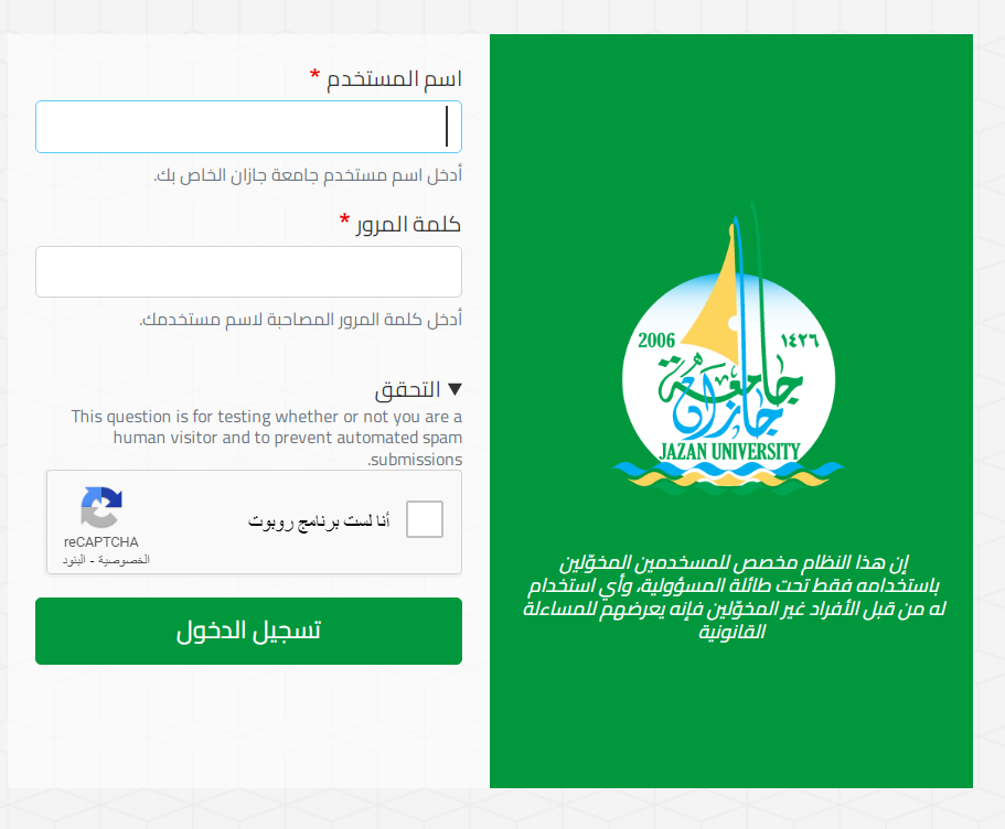 جامعة جازان النظام الأكاديمي تسجيل الدخول