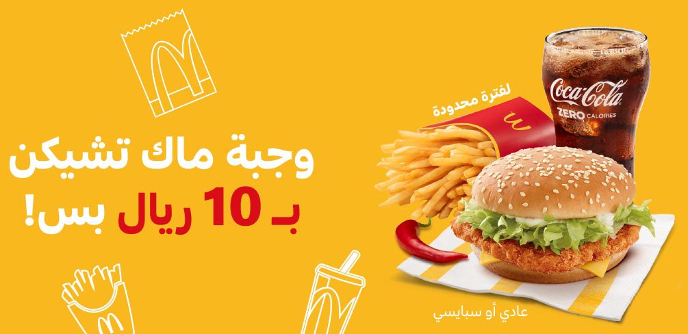 - ماكودنالدز: وجبة ماك تشيكن ستربس، بسعر 10 ريال.