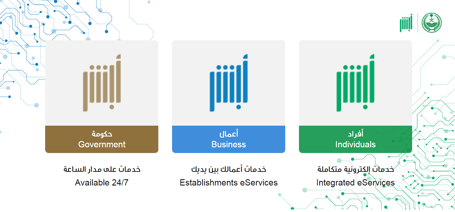 - الضغط على بوابة أبشر للخدمات الإلكترونية للأفراد.